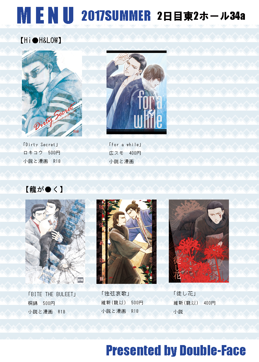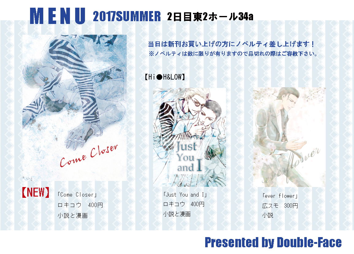 入稿も無事完了したので夏のお品書き上げに来ました。